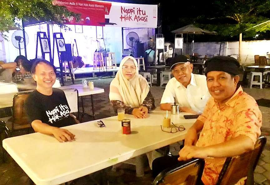 "Ini merupakan kerja jaringan, yang bahasa kerennya networking, tapi gampangnya saya sebut teman ajak teman," kisah Rusdin mengawali acara "Ngopi itu Hak Asasi".