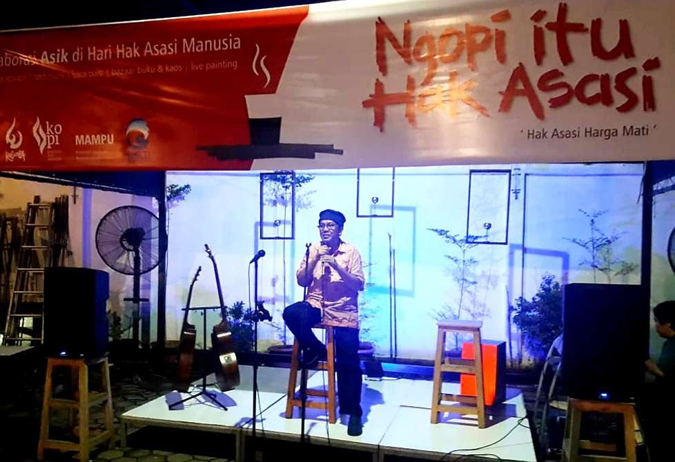 Persoalan Hak Asasi Manusia (HAM) tak hanya berkaitan dengan isu-isu politik, ekonomi dan hukum tapi juga kerja-kerja kebudayaan. Karena itu, aktivitas berkesenian perlu dilindungi dan para seniman diberi ruang untuk berekspresi. Seperti yang dilakukan sejumlah seniman bersama penyair, pegiat HAM dan akademisi yang menyelenggarakan acara bertajuk "Ngopi Itu Hak Asasi", Selasa (10/12/2019) lalu di Etika Studio.