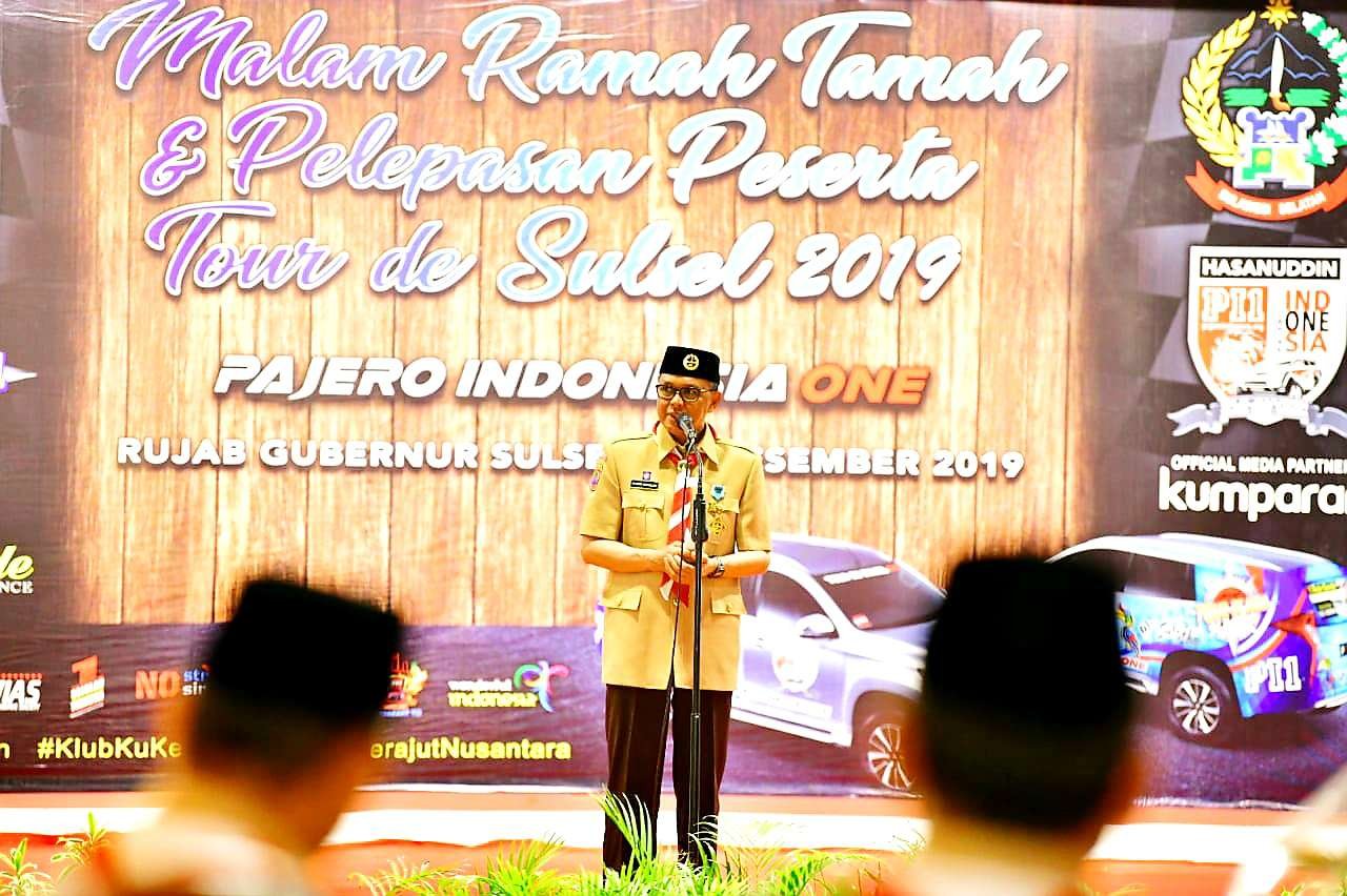 Sebanyak 27 anggota Pajero Indonesia One (PIOne) yang berasal dari Pulau Jawa bergabung dengan 100 anggota PIOne Hasanuddin peserta Tour The Sulsel 2019 dilepas Gubernur Sulsel Prof HM Nurdin Abdullah di Pelataran Laki Padada, Kompleks Rumah Jabatan Gubernur di Makassar, Jumat 27 Desember 2019.