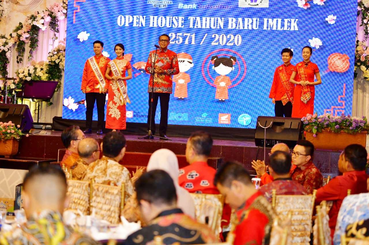 Paguyuban Sosial Masyarakat Tionghoa Indonesia (PSMTI) Sulawesi Selatan menggelar Open House Tahun Baru Imlek 2571/2020 Bersama Gubernur Sulsel di Bambuden III, Minggu 2 Februari 2020. Perayaan Imlek ini mengambil tema "Bersatu Untuk Indonesia Maju".
