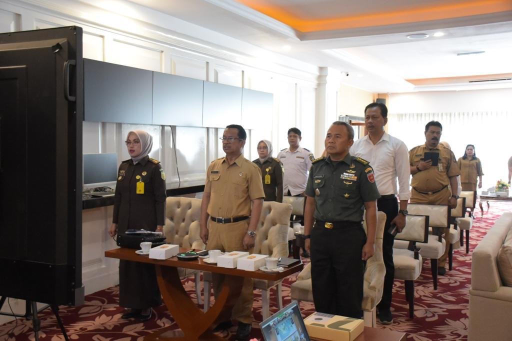 Wakili Pangdam XIV/Hasanuddin, Pamen Ahli Bidang Ideologi dan Politik Poksahli Pangdam, Kolonel Inf Fajar Nugraha mengikuti Rapat Koordinasi (Rakor) Pengendalian Inflasi Daerah secara virtual, bertempat di Kantor Gubernur Sulsel, Kota Makassar, Senin (31/07/2023).