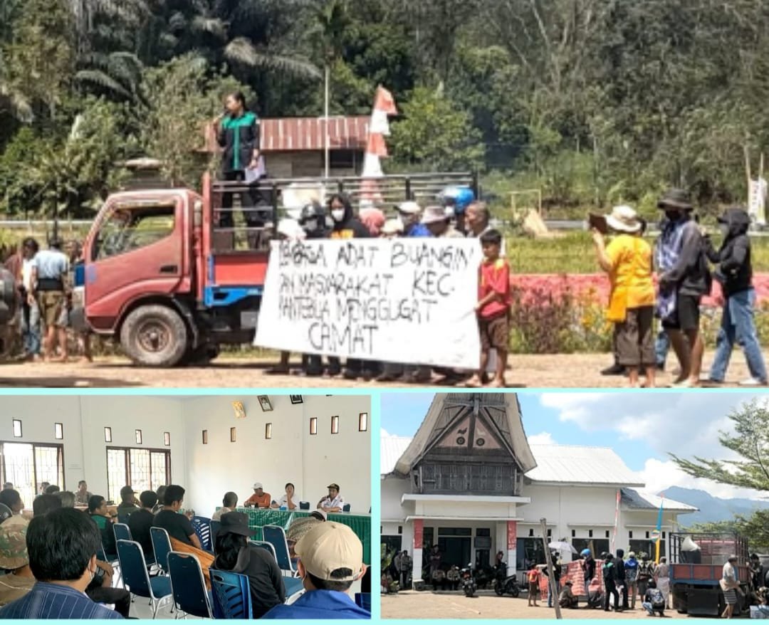 Sejumlah masyarakat Kelurahan Buangin, Kecamatan Rantebua, Toraja Utara yang mengatas namakan Lembaga Adat Buangin melakukan aksi demonstrasi di halaman kantor Kecamatan Rantebua, Rabu ( 26/07/2023).