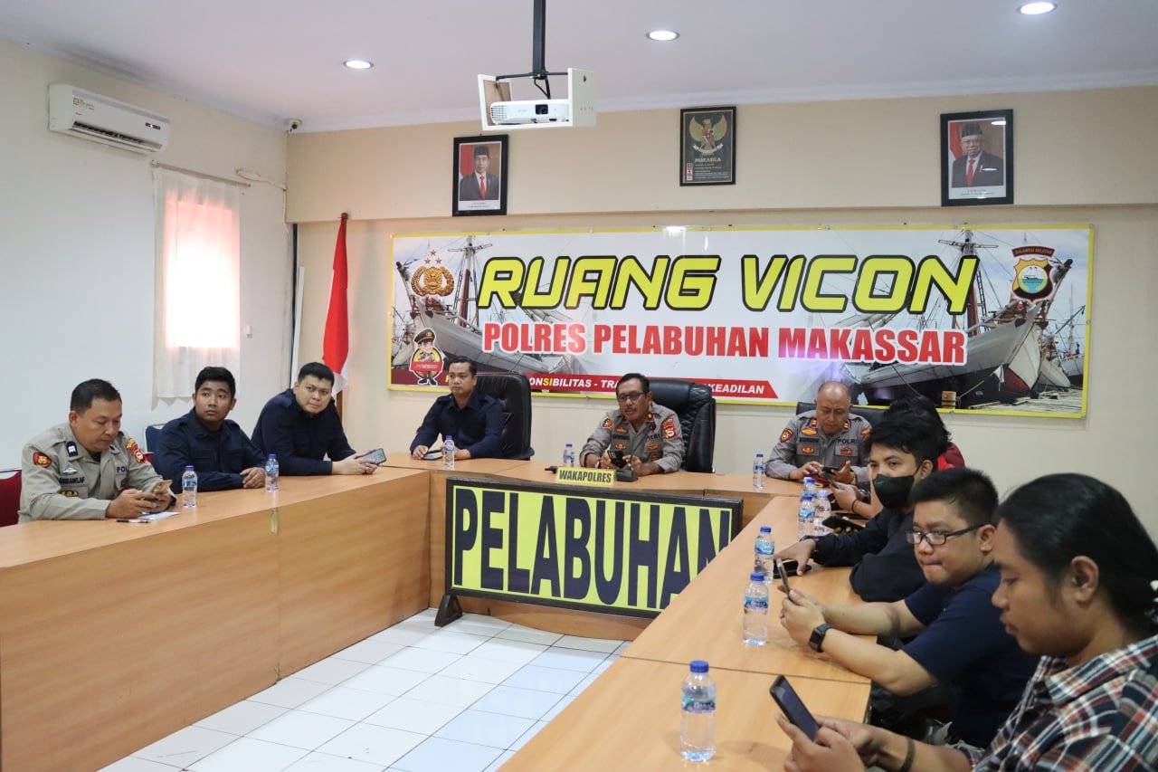 Polres Pelabuhan Makassar bersama perwakilan organisasi wartawan, seperti PWI dan IJTI mengikuti dialog publik yang digelar oleh Mabes Polri secara zoom meeting, bertempat di Aula Vicon Mapolres tersebut, Rabu (31/05/2023).