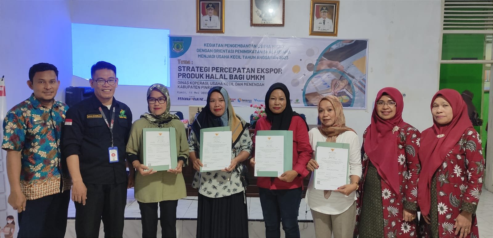 Dalam upaya memberikan pemahaman terkait program sertifikasi halal bagi Pelaku Usaha Mikro Kecil, Dinas Koperasi dan UKM Pinrang menggelar kegiatan pelatihan bagi Pelaku Usaha Mikro dan Kecil yang ada di daerah ini, di Aula Kantor Dinas Koperasi dan UKM Pinrang, Kamis (11/5/2023). Sebanyak 30 Pelaku UKM bidang Makanan dan Minuman di daerah ini hadir sebagai peserta kegiatan ini.
