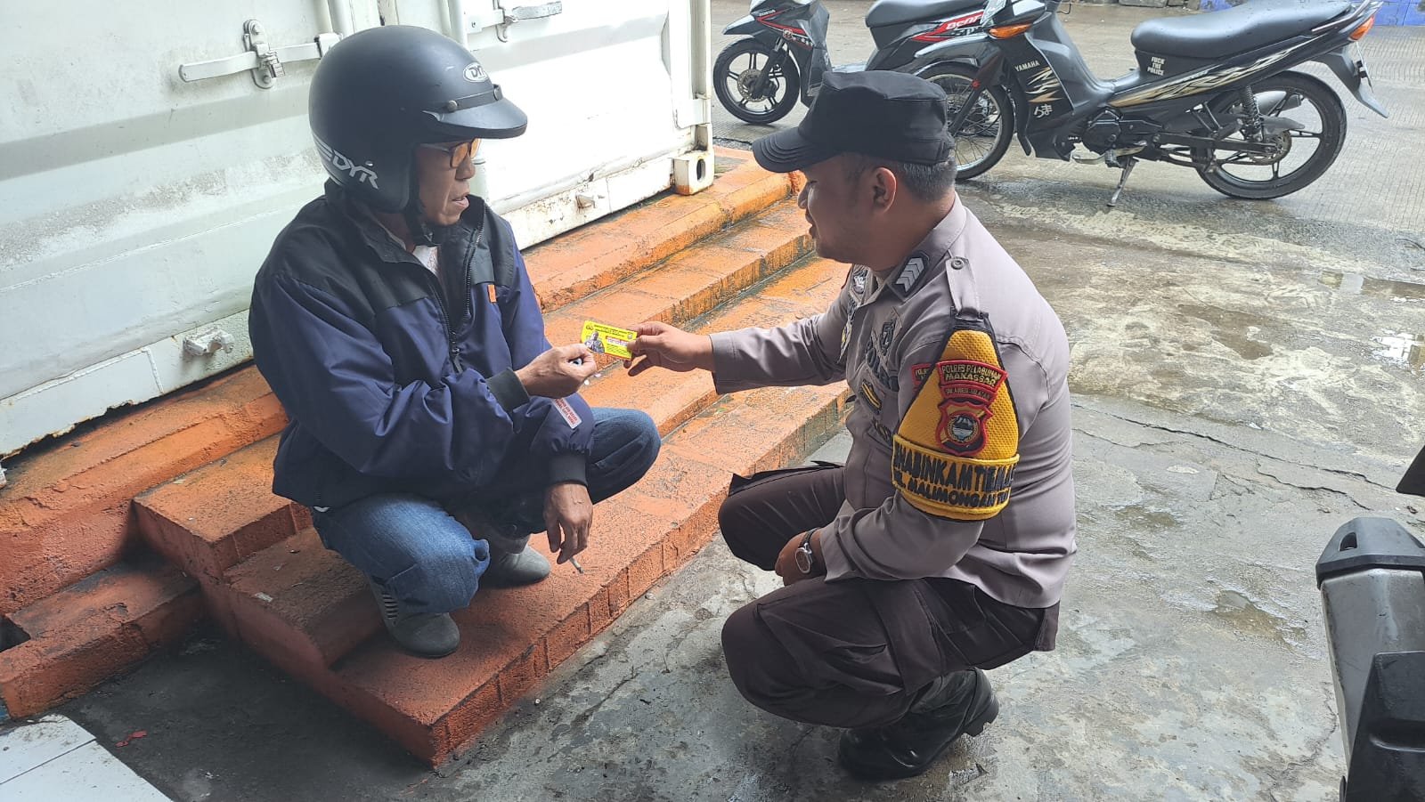 Bagikan Kartu Nama Pengaduan Masyarakat, Bhabinkamtibmas Malimongan Tua Patroli dan Berikan Imbauan