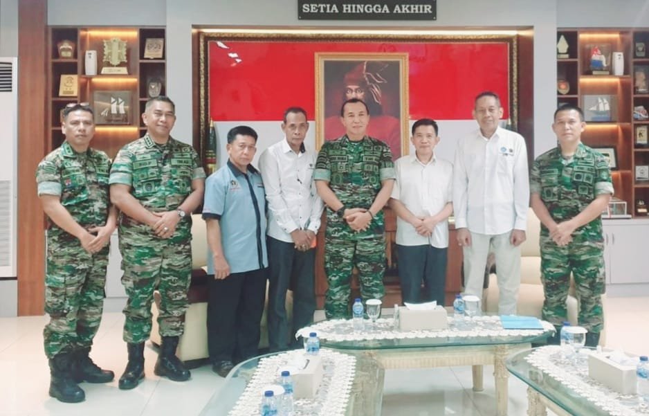 Pangdam Hasanuddin Mayjen TNI Dr. H. Totok Imam Santoso didampingi Kapendam XIV/Hasanuddin Kolonel Inf Rio Purwantoro, bersama Aster Kasdam XIV/Hasanuddin Kolonel Inf Persada Alam menerima kunjungan audiensi Pengurus PWI Sulsel bersama Panitia HPN Tahun 2023 di ruangan kehormatan Makodam XIV/Hasanuddin, Jumat (03/02/2023).
