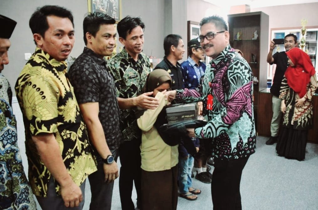 Sekretaris Kabupaten Sidrap, H. Basra secara simbolis menyerahkan bantuan CSR Program Penanganan Anak Tidak Sekolah (ATS) kepada 12 Kepala Desa, Jumat 3 Februari 2023.