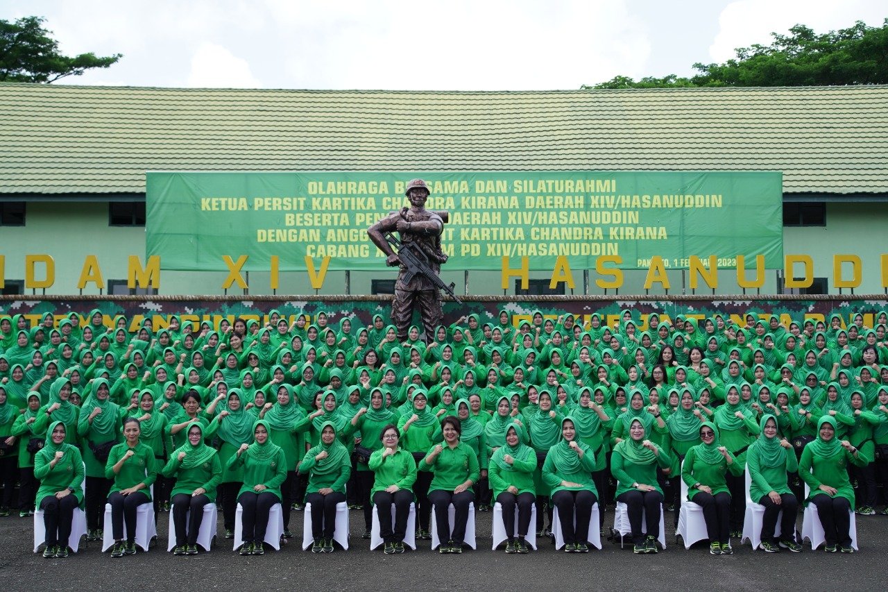 Ketua Persit Kartika Chandra Kirana (KCK) PD XIV/Hasanuddin Ny. Desi Totok Imam melaksanakan kunjungan kerja dan silaturrahmi yang diselingi kegiatan olahraga bersama dengan Persit Rindam XIV/Hasanuddin, untuk mempererat tali persaudaraan dan kekompakan antar Ibu-ibu anggota Persit, bertempat di Mako Rindam XIV/Hasanuddin, Pakatto, Kabupaten Gowa, Rabu (01/02/2023).