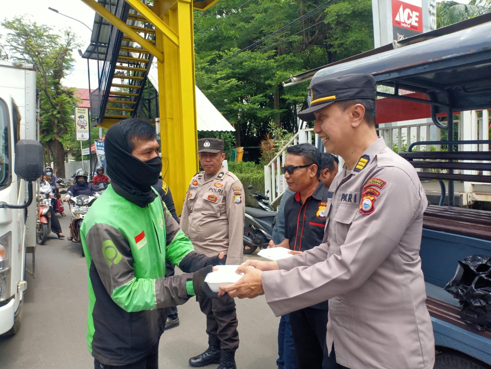 Kepolisian Polsek Mamajang Polrestabes Makassar melaksanakan Jumat Berkah dengan berbagi ratusan makanan kepada masyarakat di wilayah Kecamatan Mamajang tepatnya di Jalan Sam Ratulangi dan Jalan Andi Djemma Kota Makassar, Jumat (25/11/2022).