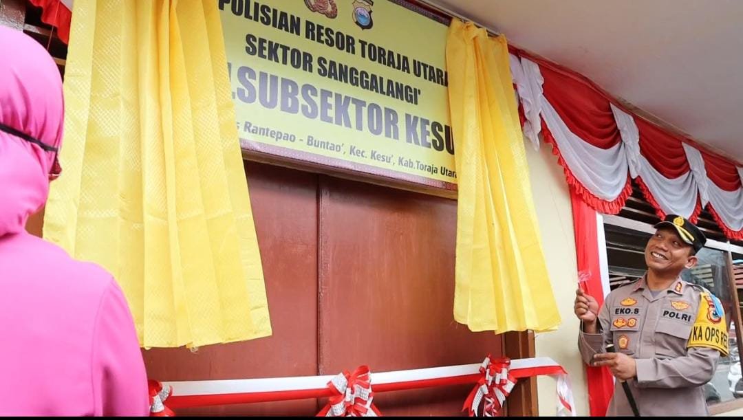 Upaya mendekatkan dan meningkatkan pelayanan kepada masyarakat, Kapolres Toraja Utara AKBP Eko Suroso didampingi Waka Polres Kompol Marthen Buttu dan sejumlah Pejabat Utama serta para Perwira dan Bintara Polres Toraja Utara menggelar pengukuhan Polsubsektor Kesu di Jln. Poros Kesu, Kelurahan Ba'tan, Kecamatan Kesu, Kabupaten Toraja Utara, Kamis (06/10/2022).