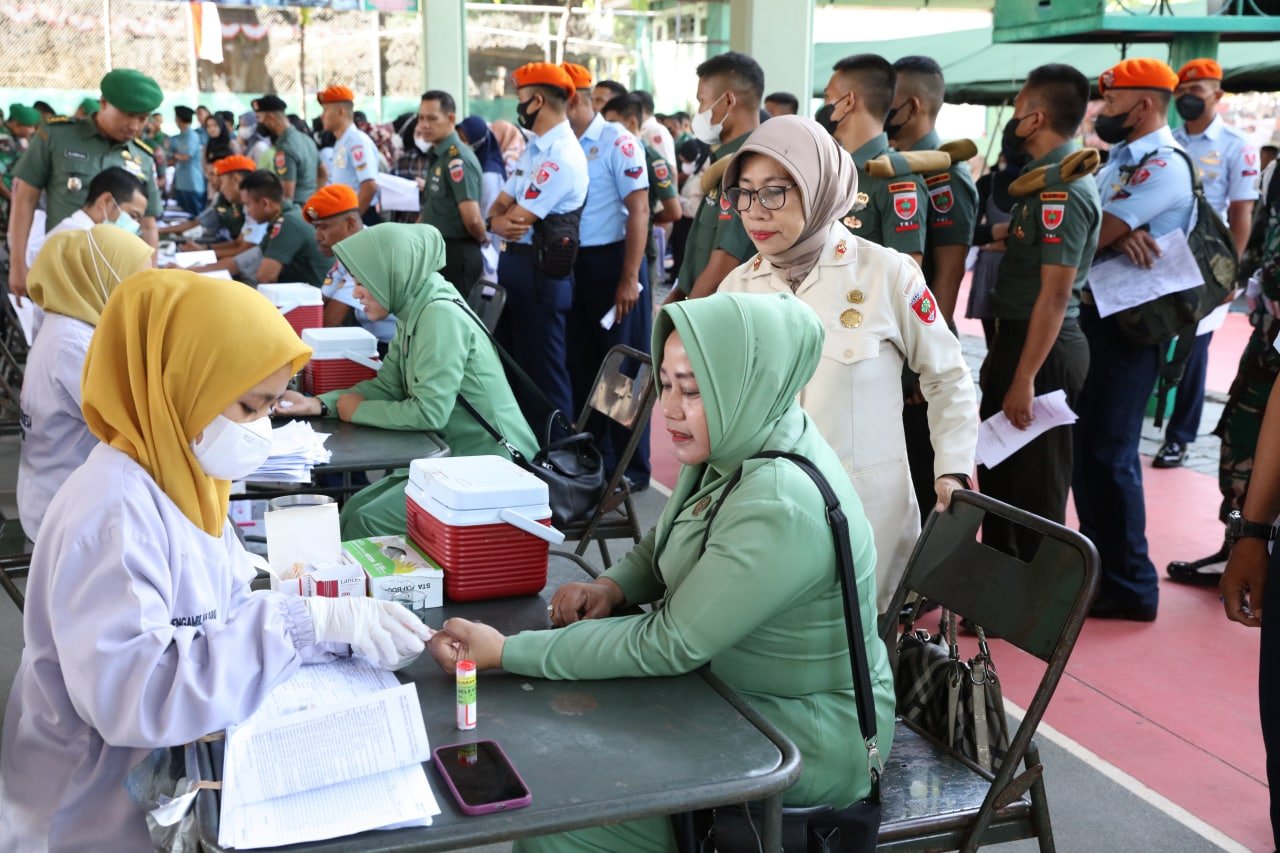 Pangdam XIV/Hasanuddin Mayjen TNI Dr. Totok Imam Santoso, SIP, S.Sos, M.Tr(Han), memimpin kegiatan Bakti Sosial Kesehatan Donor Darah dan Stunting, bertempat di Lapangan Tenis Hasanuddin Jl. Jend. Sudirman, Kota Makassar. Selasa (04/10/2022).