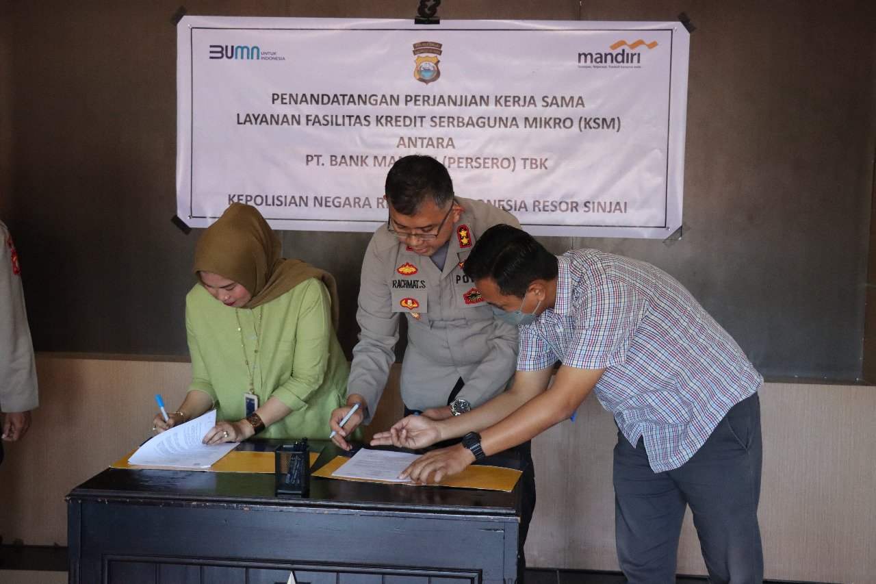 Penandatanganan MoU mengawali kerjasama antara PT Bank Mandiri (Persero) Tbk Sinjai dengan Polres Sinjai.