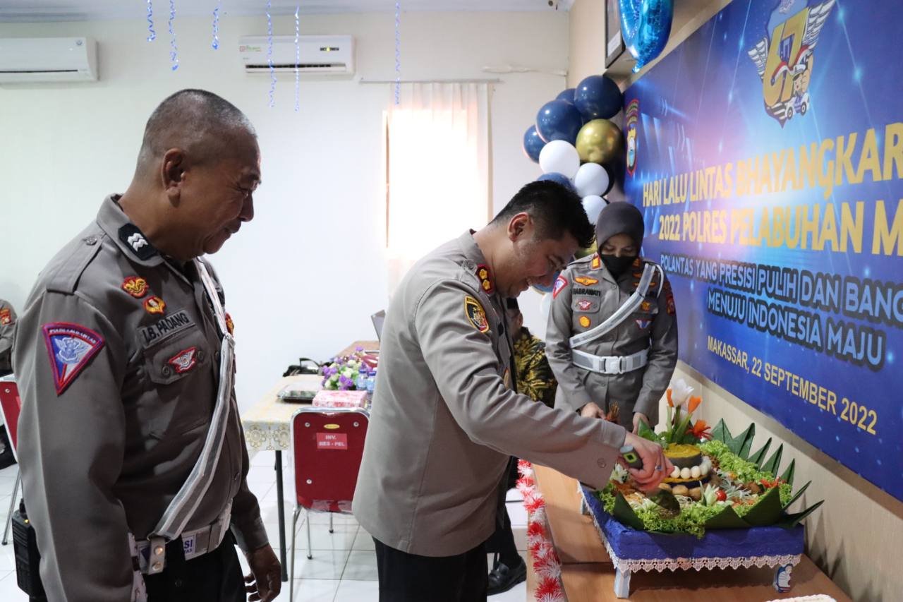 Satuan Lalu Lintas Polres Pelabuhan Makassar menggelar syukuran memperingati Hari Lalu Lintas Bhayangkara ke-67 pada Jumat (23/09/2022) di ruang Vicon Presisi.