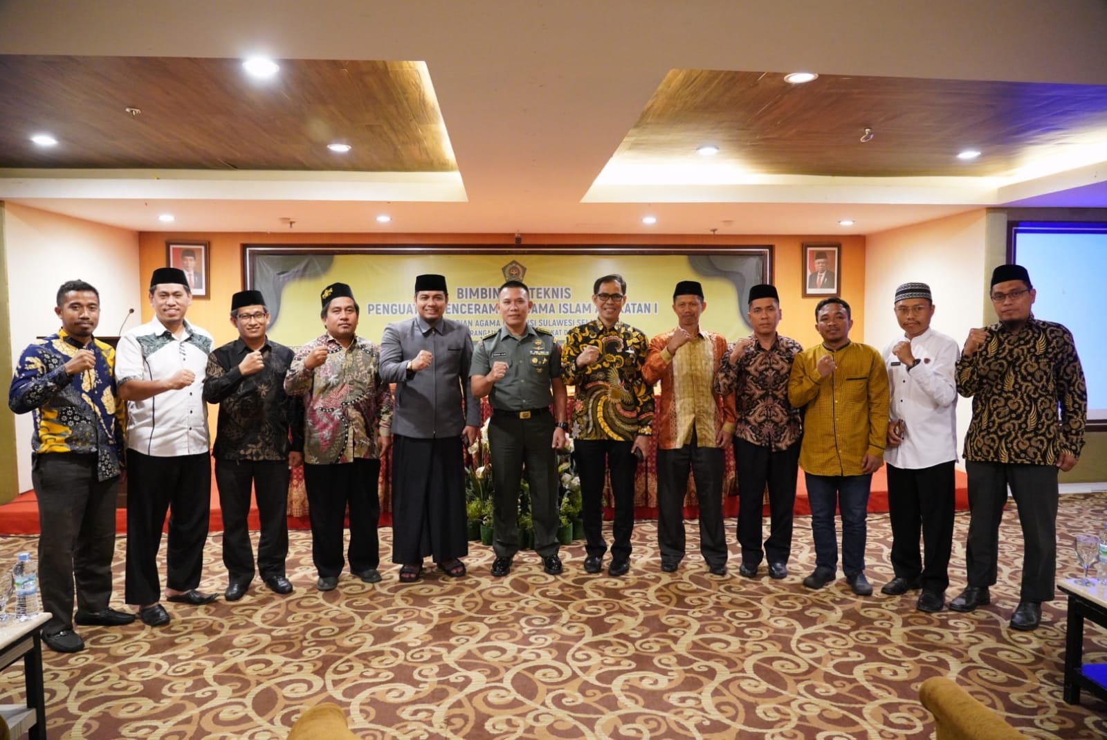 Pangdam XIV/Hasanuddin Mayjen TNI Dr. Totok Imam Santoso, SIP, S.Sos, M.Tr.(Han) diwakili oleh Asisten Teritorial (Aster) Kasdam XIV/Hasanuddin Kolonel Inf Persada Alam sebagai narasumber pada kegiatan bimbingan teknis (bimtek) dalam rangka penguatan penceramah Agama Islam angkatan I, bertempat di Crupant Room Hotel Almadera Jl. Somba Opu, Makassar, Senin (19/09/2022).
