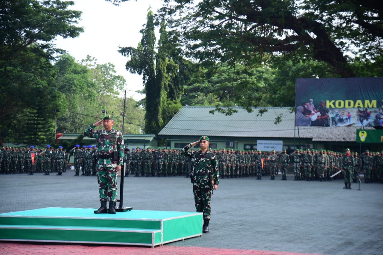 Kasdam XIV/Hasanuddin Brigjen TNI Dany Budiyanto, memimpin Upacara Bendera 17-an bulan September 2022, diikuti oleh prajurit dan PNS yang berada di wilayah Kota Makassar bertempat di Lapangan M. Yusuf Makodam, Jl. Urip Sumoharjo, Makassar, Senin (19/09/2022).