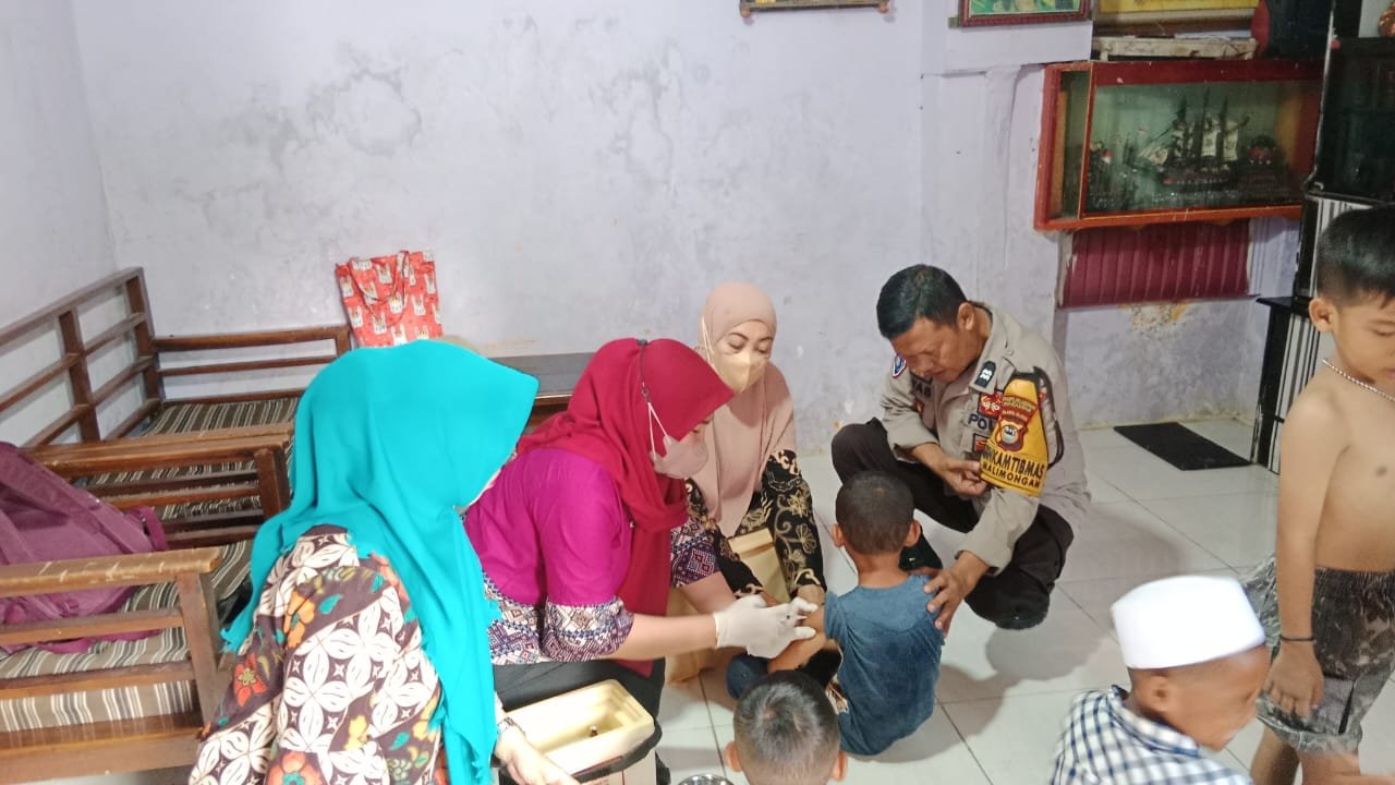 Bersama Petugas Nakes, Bhabinkamtibmas Malimongan Kunjungi Rumah Warga Berikan Vaksinasi Rubella
