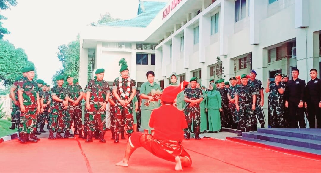 Kodam XIV/Hasanuddin menggelar acara tradisi penyambutan Pangdam XIV/Hasanuddin Mayjen TNI Dr. Totok Imam Santoso, SIP, S.Sos, M.Tr (Han) beserta Ketua Persit KCK PD XIV Hasanuddin Ny. Desi Totok Imam di Markas Ayam Jantan dari Timur Makodam Jl. Urip Sumoharjo, Makassar, Senin (05/09/2022).