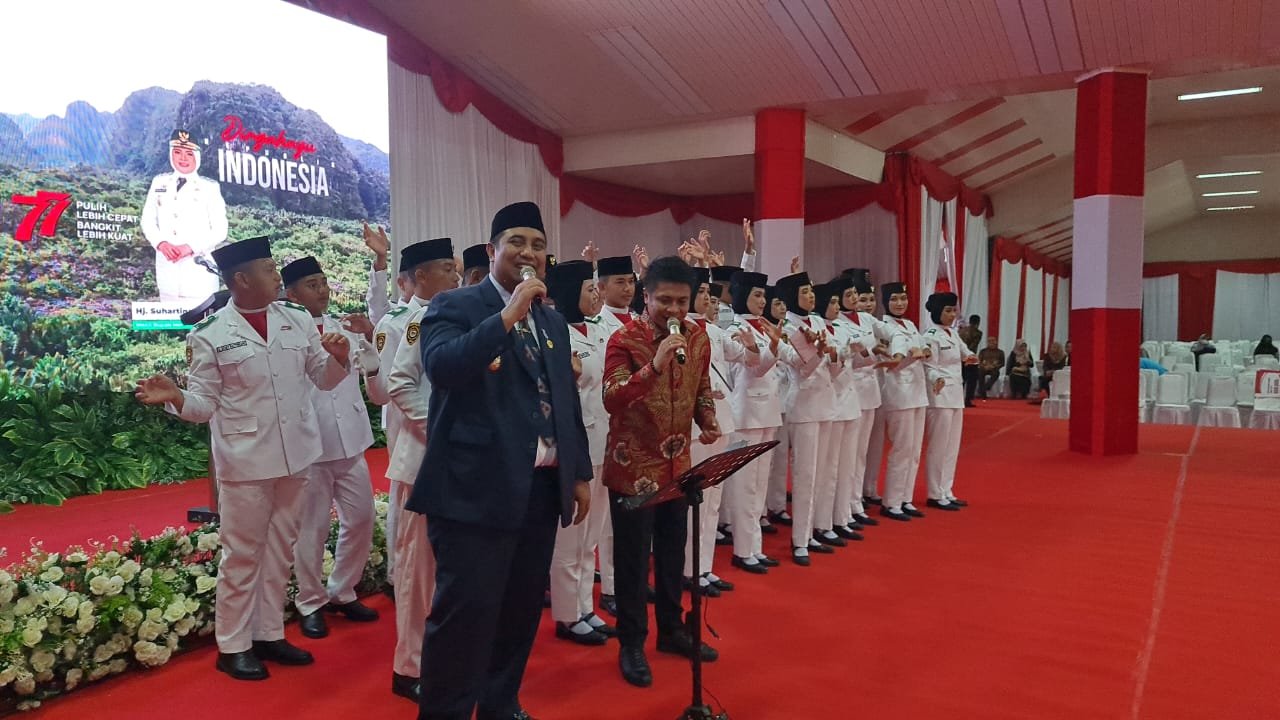 Nuansa meriah dan penuh semarak sangat terasa pada peringatan puncak perayaan Hari Ulang Tahun (HUT) Kemerdekaan Republik Indonesia (RI) ke-77 di Kabupaten Maros, Provinsi Sulsel, Rabu (17/08/2022).