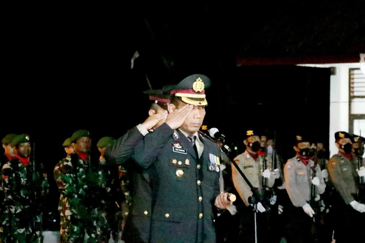 Apel kehormatan dan renungan suci dalam rangka memperingati HUT Kemerdekaan Republik Indonesia ke-77 di Taman Makam Pahlawan (TMP) Buntu Lepong, Kecamatan Rantepao, Kabuapten Toraja Utara, Selasa (16/08/2022) malam berlangsung khidmat.