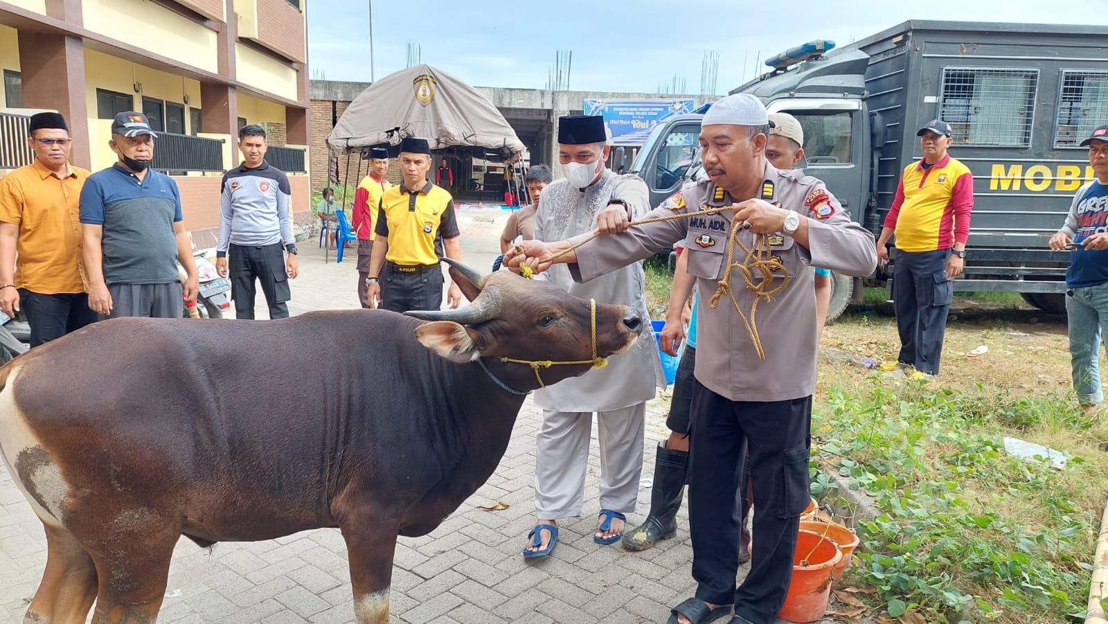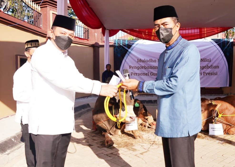 Guna memaknai perayaan Idul Adha 1443 Hijriah, jajaran Polres Gowa kembali mengadakan penyembelihan dan pembagian daging hewan kurban.