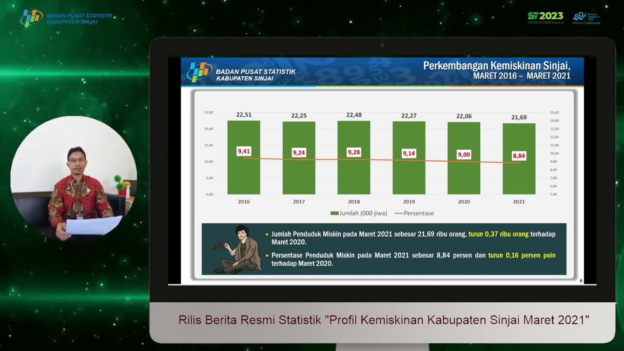 Pemerintah Kabupaten Sinjai berhasil mewujudkan kesejahteraan masyarakat yang diukur dengan penurunan angka kemiskinan dari tahun ke tahun.