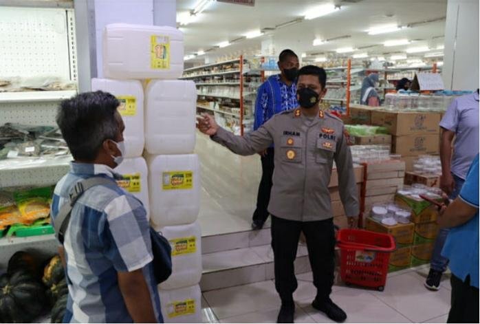 Kapolres Kotamobagu AKBP Irham Halid mengecek langsung ketersediaan minyak goreng di beberapa gudang distributor hingga pasar, Kamis (17/3/2022).