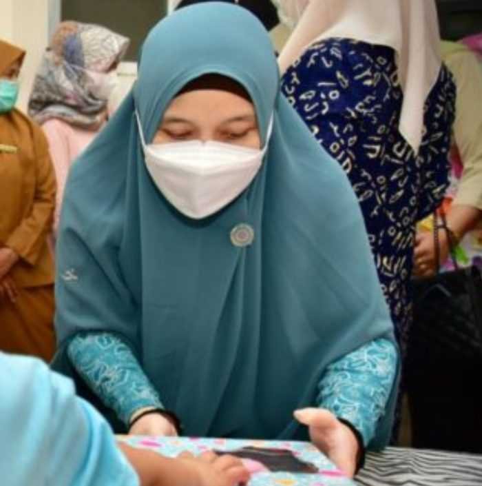 Ketua Tim Penggerak PKK Sulsel, Naoemi Octarina, menjenguk bayi AI (15 bulan) di Rumah Sakit Pendidikan Universitas Hasanuddin, Selasa, 15 Maret 2022.