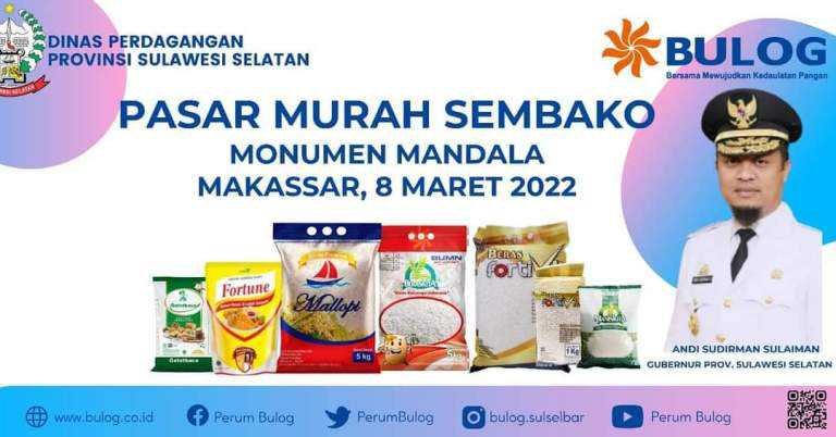 Pemerintah Provinsi Sulawesi Selatan melalui Dinas Perdagangan menggelar Pasar Murah Sembako, Selasa, 8 Maret 2022 di Monumen Mandala, Jalan Jenderal Sudirman, Makassar.