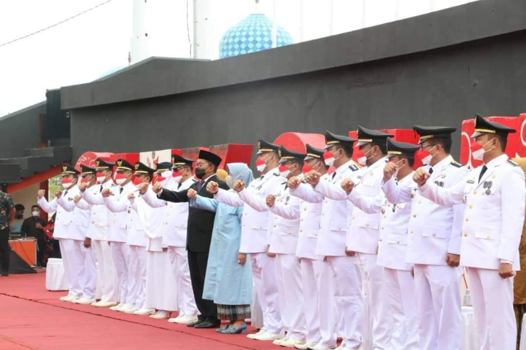 Wali Kota Makassar, Danny Pomanto melantik 15 camat di Pantai Losari, pelantikan dilakukan di ruang terbuka karena alasan pandemi COVID-19. di Jln Penghibur, Kec. Ujung Pandang, Kota Makassar, Sulawesi Selatan. Kamis 26/8/2021, pukul 08.00 Wita.