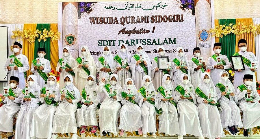 Sekolah Dasar Islam Terpadu Darussalam (SD IT) Darussalam Makassar, Yayasan Darussalam Makassar menggelar Wisuda Qurani Sidogiri Angkatan I, di Gedung Serbaguna Darussalam Jalan Perintis Kemerdekaan Sudiang, Rabu (23/6/2021).