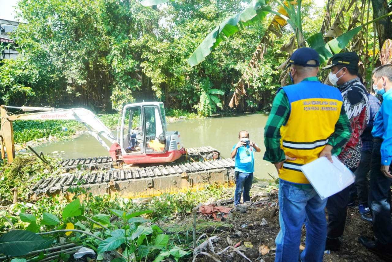 Pelaksana Tugas Gubernur Sulawesi Selatan (Sulsel), Andi Sudirman Sulaiman, bersama dengan Balai Besar Wilayah Sungai (BBWS) Pompengan Jeneberang, meninjau pengerukan Sungai Balangturungang Daya, di Jalan Perintis Kemerdekaan, Makassar, Minggu (14/3/2021).