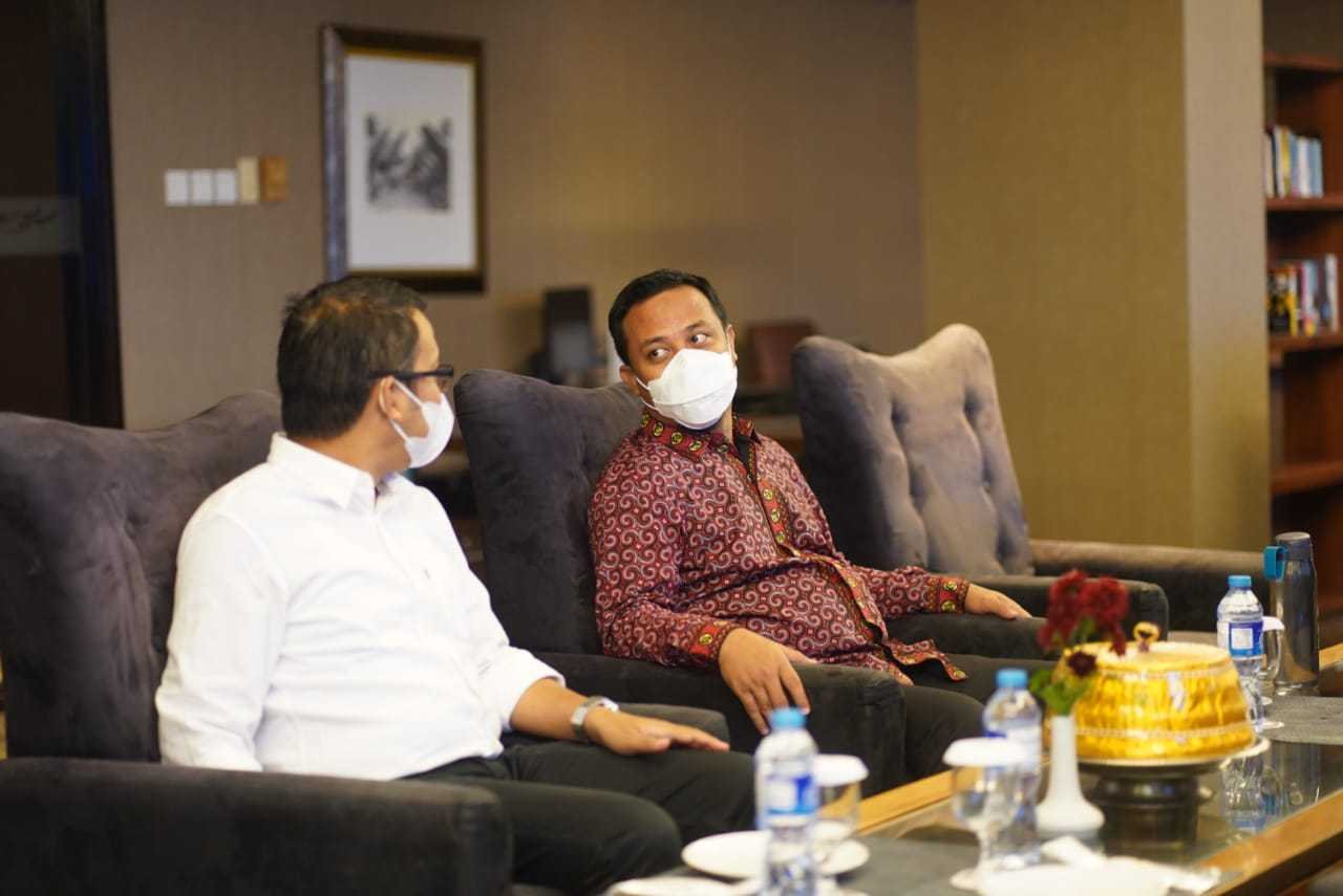 Pelaksana Tugas (Plt) Gubernur Sulawesi Selatan (Sulsel), Andi Sudirman Sulaiman, menerima pengurus Dewan Pimpinan Daerah (DPD) Asosiasi Pengusaha Indonesia (Apindo) Sulsel, di Rumah Jabatan Wakil Gubernur Sulsel, di Makassar, Rabu (10/3/2021).