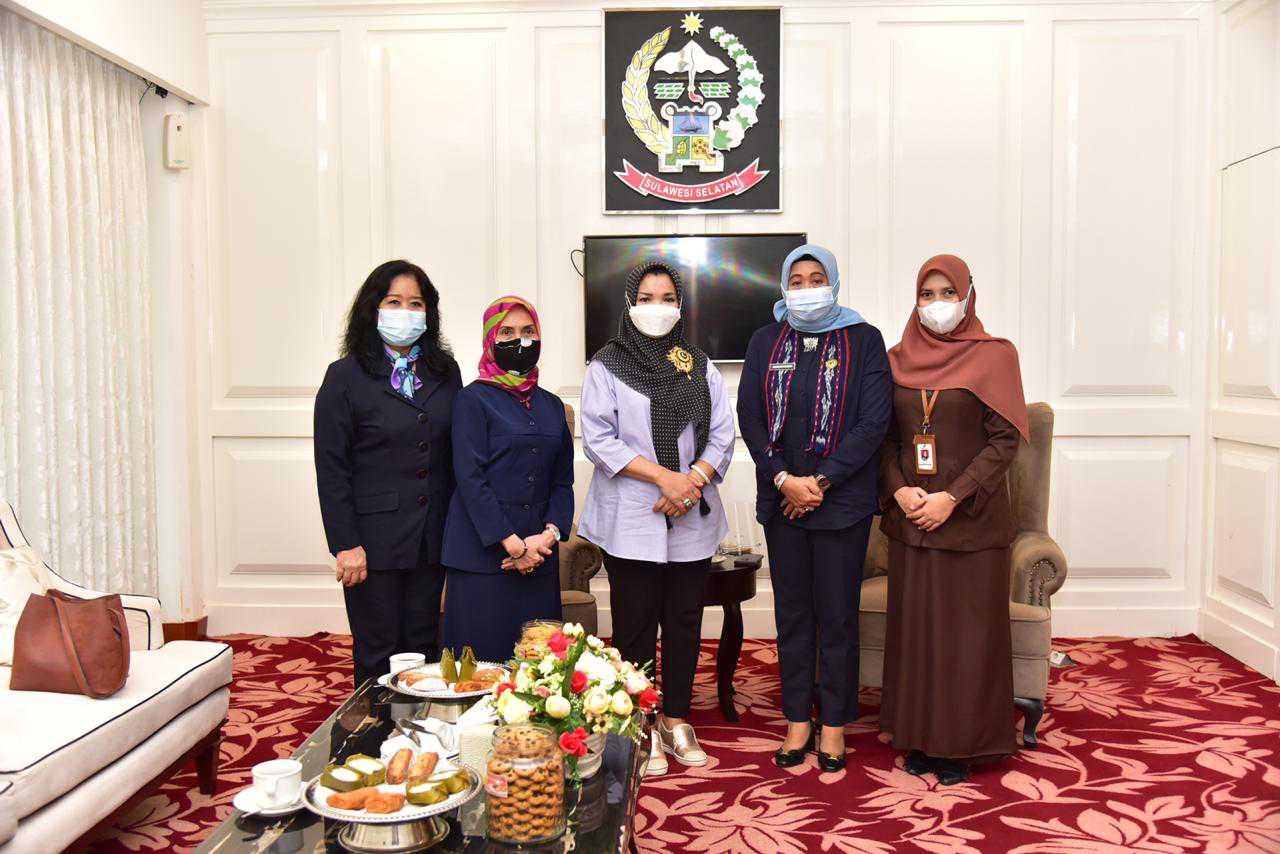 Kepala Balai Pengawasan Obat dan Makanan (BPOM) Makassar, Hardaningsih, menemui Ketua Tim Penggerak PKK Sulsel, Lies F Nurdin, di Baruga Lounge Kantor Gubernur Sulsel, Senin (15/2/2021). Kedatangan Hardaningsih tersebut, untuk mengajak PKK bermitra dalam mengedukasi pelaku Usaha Mikro Kecil, dan Menengah (UMKM).