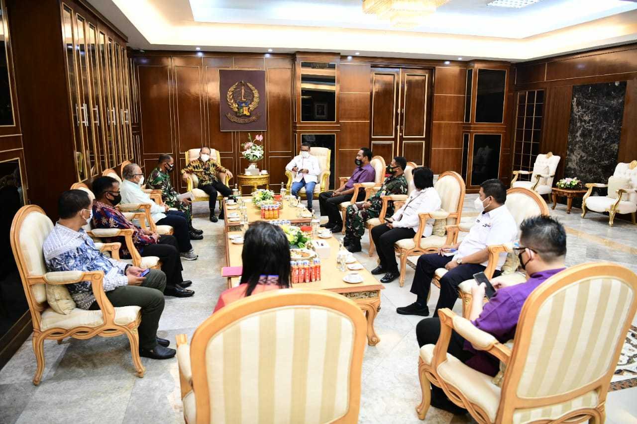 Gubernur Sulawesi Selatan (Sulsel), Prof HM Nurdin Abdullah, menerima panitia Natal Oikumene dan panitia sidang Persatuan Gereja Indonesia Wilayah (PGIW) Sultengbar, di Kantor Gubernur Sulsel, Jalan Urip Sumoharjo Makassar, Rabu (20/1/2021).