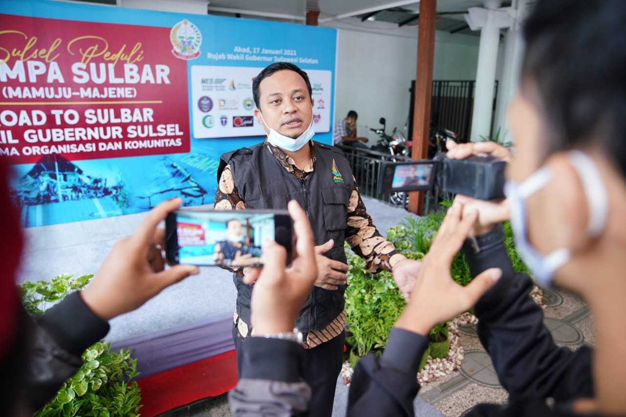 Wakil Gubernur Sulawesi Selatan (Sulsel), Andi Sudirman Sulaiman bersama forum Kerukunan Umat Beragama (FKUB) Sulawesi Selatan, Organisasi Kemahasiswaan, Pemuda dan Masyarakat serta Medis, turut ikut serta dalam aksi kemanusiaan 'Sulsel Peduli Gempa Sulbar' menuju Majene dan Mamuju, Provinsi Sulawesi Barat (Sulbar), Minggu (17/1/2021).