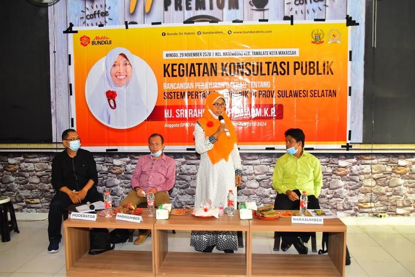 Provinsi Sulawesi Selatan butuh regulasi sistem pertanian organik dalam bentuk Peraturan Daerah (Perda). Begitu simpulan yang mengemuka dalam kegiatan Konsultasi Publik Ranperda tentang Sistem Pertanian Organik yang diadakan Anggota DPRD Provinsi Sulsel, Hj. Sri Rahmi, SAP, MAdm, KP, di Kelurahan Barombong, Kecamatan Tamalate, Makassar, Minggu, (29/11/2020) lalu.