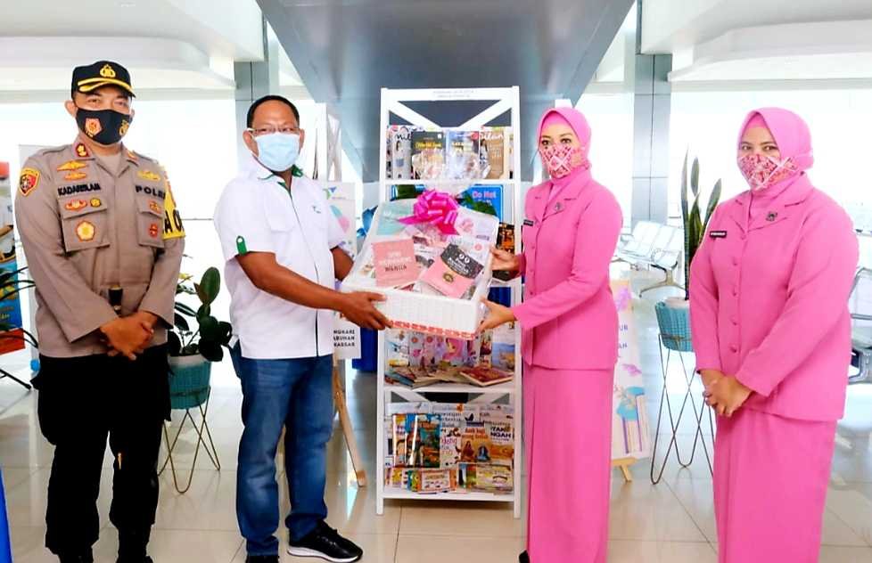 Kunjungan Kerja di Polres Pelabuhan Makassar, Ketua Bhayangkari Daerah Sulsel Berikan Bantuan Buku di Taman Bacaan