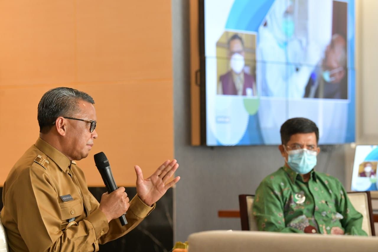 Gubernur Sulawesi Selatan (Sulsel), Prof HM Nurdin Abdullah, menjelaskan bagaimana tentang UU Cipta Kerja atau Omnibuslaw di tengah-tengah ratusan massa aksi, di Kantor Gubernur Sulsel, Senin (12/10/2020).