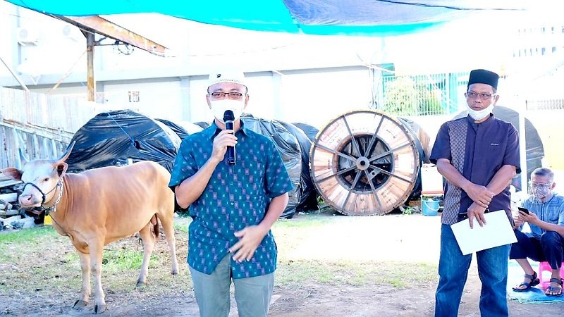 Pengurus dan warga IKM Parepare yang berdomisili di Kota Makassar melaksanakan pemotongan hewan kurban sebanyak 3 (tiga) ekor sapi, Sabtu (01/08/2020).