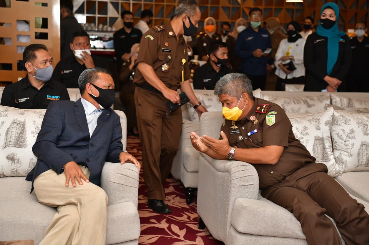 Gubernur Sulawesi Selatan, Prof HM Nurdin Abdullah, menyaksikan penandatanganan MoU antara Perseroan Daerah (Perseroda) dengan Kejaksaan Tinggi (Kejati) Sulsel, di Kantor Gubernur Sulsel, Jalan Urip Sumoharjo Makassar, Senin (27/7/2020).