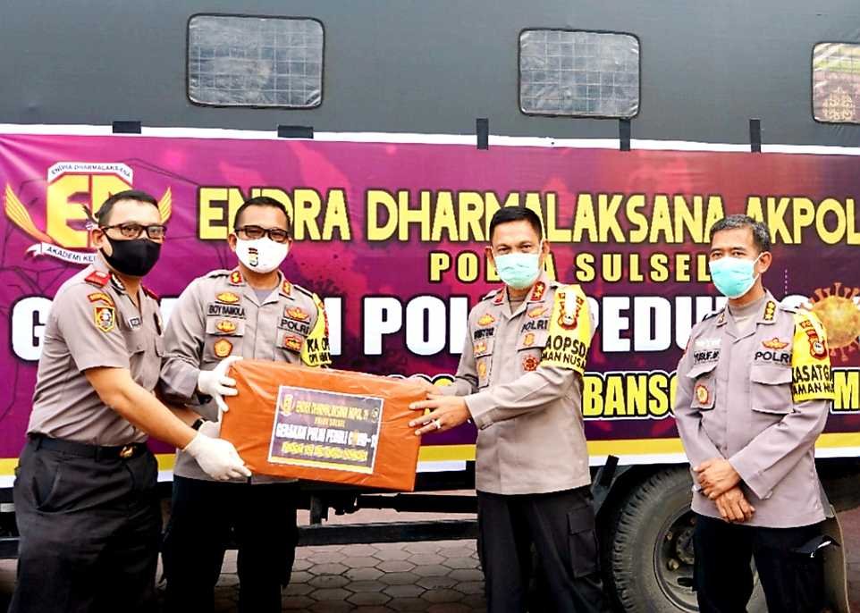 Alumni Akpol 1999 yang tergabung dalam 9 Kapolres dan 1 siswa Sespimen di jajaran Polda Sulsel menyerahkan 1.999 paket sembako dan 1.999 masker kepada Kapolda Sulsel pada Selasa (19/05/2020) sore.