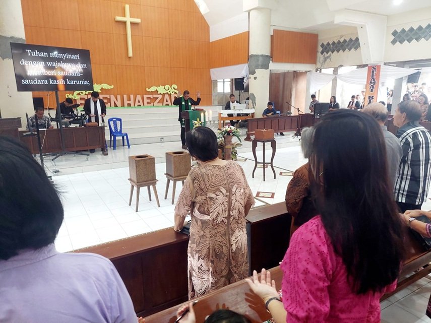 Sekitar kurang lebih 350 orang umat Kristiani warga Desa Woloan II, Kecamatan Tomohon Barat, Kota Tomohon, Provinsi Sulawesi Utara (Sulut) memadati seluruh sisi gedung gereja GMIM (Gereja Masehi Injil Minahasa) Ebenhaezer, Minggu (5/10/2025) pagi. Mereka mengikuti Ibadah Minggu yang dipimpin Penatua Alfred A.A.A. Manginsihi, S.Sos (Anggota BPMJ).