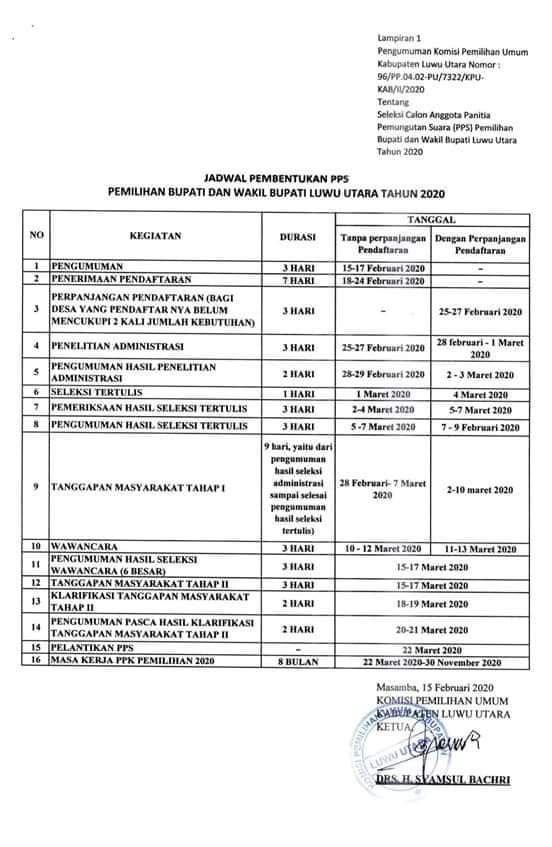 Jumlah yang akan diterima sebagai anggota PPS di Lutra 519 orang dari 15 Kecamatan dan 173 Desa/Kelurahan.