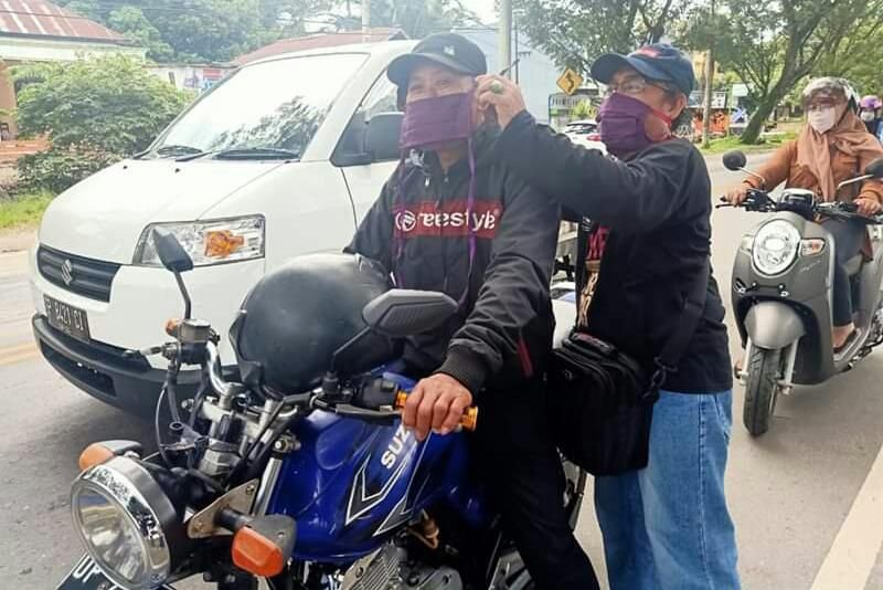 Komisi Pemilihan Umum (KPU) Kabupaten Luwu Utara (Lutra), Sulawrsi Selatan (Sulsel) bagi-bagi masker kepada masyarakat. Sasaran utama adalah para pengendara motor atau mobil yang tidak menggunakan masker saat berkendara di kawasan lampu merah kota Masamba, Rabu (15/4/2020).