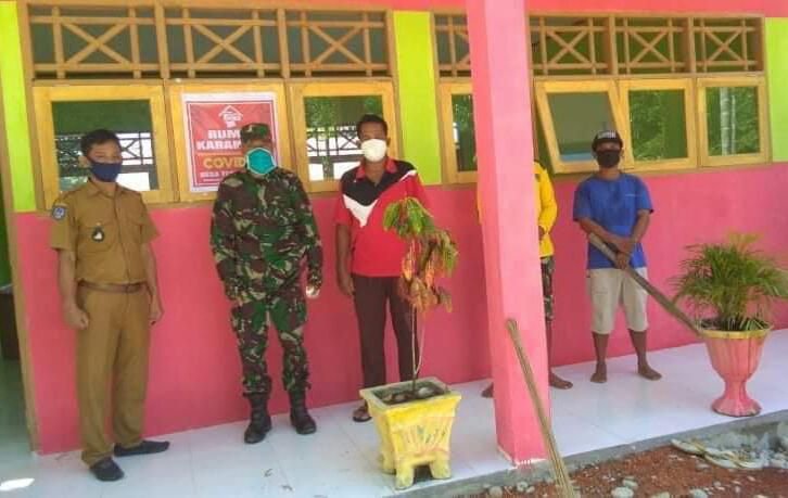 Kepala Desa (Kades) Terpedo Jaya bersama bidan Pustu mengunjungi tiga (3) rumah karantina yang berbeda lokasi, Senin (11/5/2020).