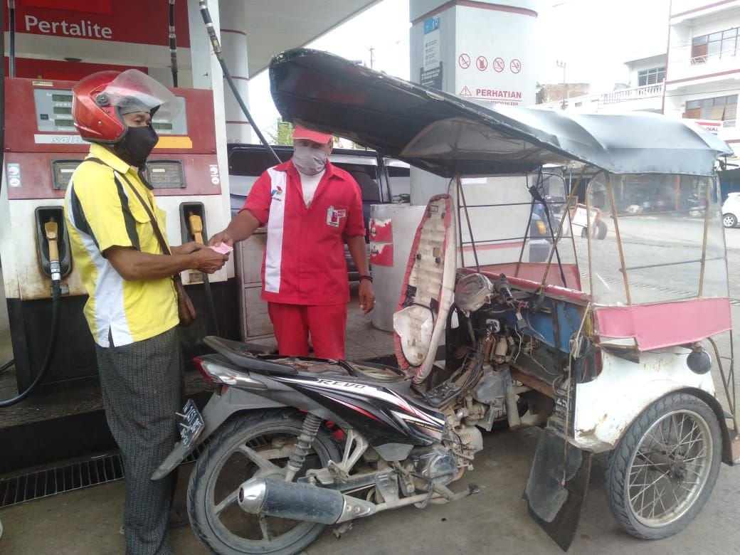 Sementara itu H.Sudirman Beddu mengatakan, betapa bahagianya melihat tukang bemor mengisi BBM dengan wajah senyum di tengah pandemi virus Corona.