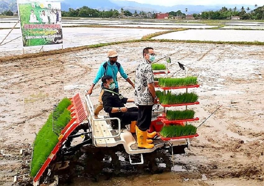 Kedatangan Mentan RI dan rombongannya disambut oleh Wakil Bupati Maros Ir. H. A. Harmil Mattotorang, yang kemudian menuju areal persawahan di Dusun Tangkuru dan selanjutnya melakukan penanaman bibit padi perdana dengan menggunakan alat tanam Rice Transporter.
