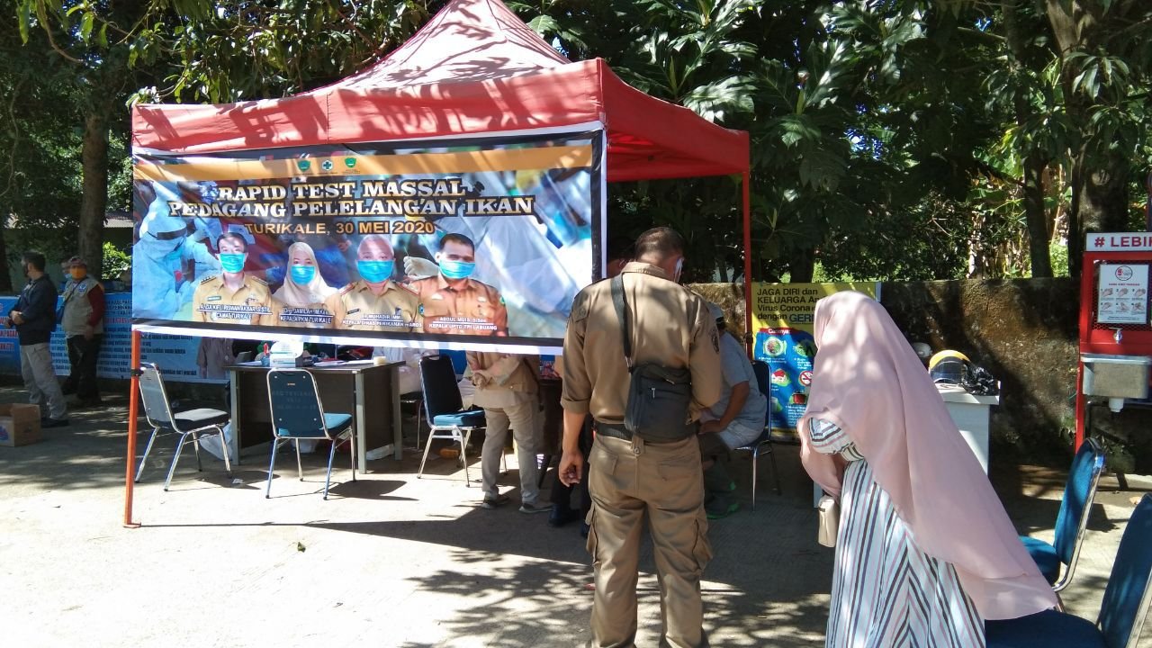 Dinas Kesehatan Kabupaten Maros bersama Puskesmas Kecamatan Turikale, Sabtu (30/5/2020) sekitar pukul 09.00 Wita, melaksanakan rapid test di Pasar Pelelangan Ikan (PPI) Labuang, Kecamatan Turikale, Kabupaten Maros, Sulawesi Selatan (Sulsel).