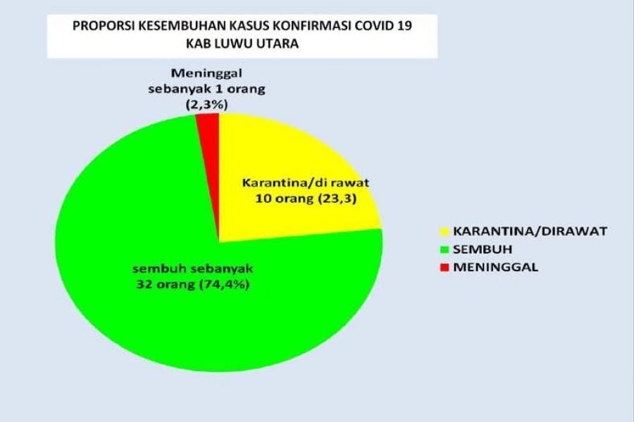 Masih 26 PDP dan 25 sudah sembuh serta 1 meninggal. Untuk kasus posiitif corona, masih juga tetap 43 kasus dimana 32 orang sudah sembuh dan 10 masih dirawat intensif atau dikarantina serta satu meninggal.