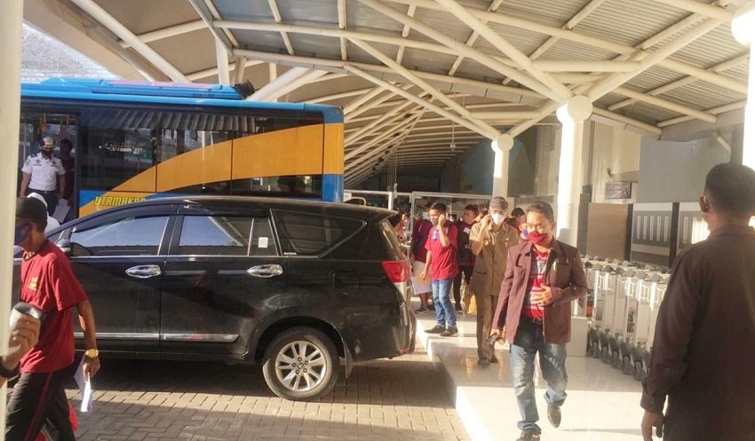 Usai menjalani serangkaian kegiatan sesuai protokol kesehatan, para pekerja migran Indonesia asal Sulsel itu meninggalkan Bandara Internasional Sultan Hasanuddin dan bertolak menuju Swiss Bell Hotel Jln Ujung Pandang, Kota Makassar untuk menjalani karantina selama 14 hari. (im/jw)